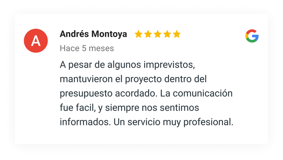 Una vez terminado el proyecto, te pediremos una revisión final del proyecto y una calificación de tu experiencia con nosotros